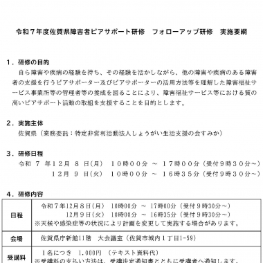 令和7年度佐賀県障害者ピアサポート研修(フォローアップ研修)の実施について